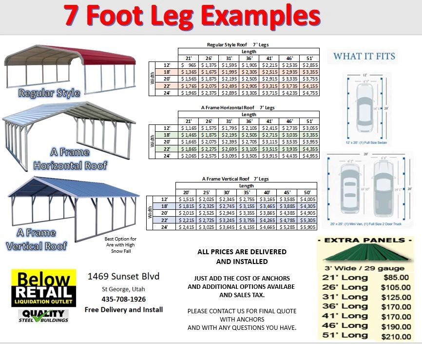 First, take the leg height of 6 feet and add the 6 inches to the roof where it starts to slope. A wide variety of cantilever carport options are available to you, such as plastic type. Express carports offers only the best in many different carport designs and types.